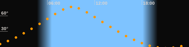| Höchster Stand (Kulmination) | 09:10 Uhr (h = 76,9°) |
