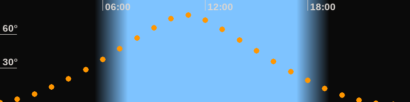 | Höchster Stand (Kulmination) | 10:54 Uhr (h = 76,9°) |