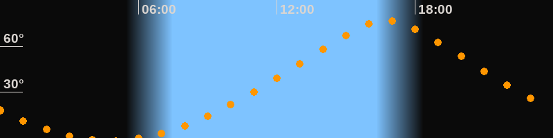 | Höchster Stand (Kulmination) | 16:44 Uhr (h = 76,9°) |