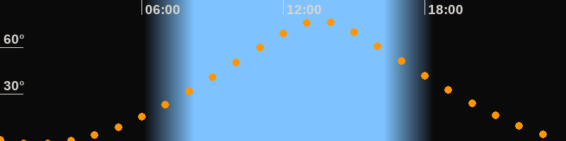 | Höchster Stand (Kulmination) | 13:33 Uhr (h = 76,9°) |