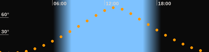 | Höchster Stand (Kulmination) | 13:09 Uhr (h = 76,9°) |