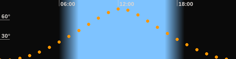 | Höchster Stand (Kulmination) | 12:15 Uhr (h = 76,9°) |