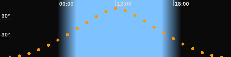 | Höchster Stand (Kulmination) | 12:07 Uhr (h = 76,9°) |