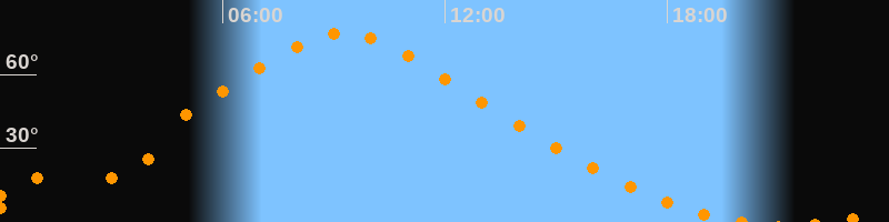 | Höchster Stand (Kulmination) | 09:15 Uhr (h = 76,9°) |