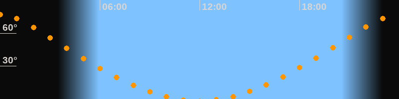 | Aufgang | 13:00 Uhr im Norden (αAz = 12,4°) |