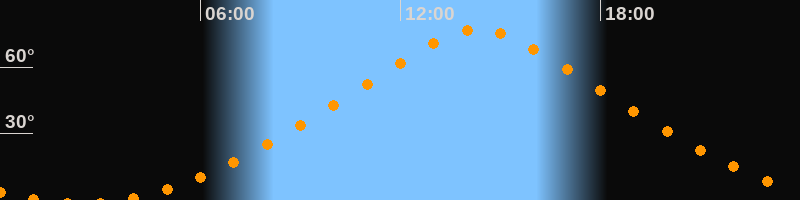 | Höchster Stand (Kulmination) | 14:21 Uhr (h = 76,9°) |
