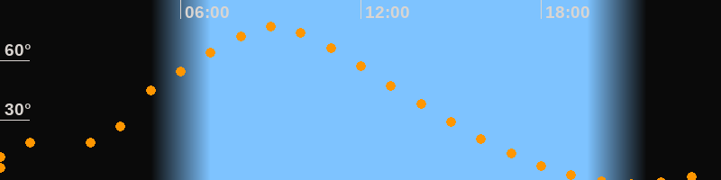 | Höchster Stand (Kulmination) | 09:07 Uhr (h = 76,9°) |