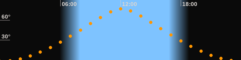 | Höchster Stand (Kulmination) | 12:06 Uhr (h = 76,9°) |