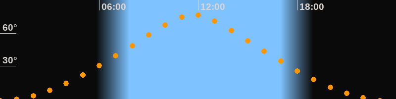 | Höchster Stand (Kulmination) | 11:43 Uhr (h = 76,9°) |