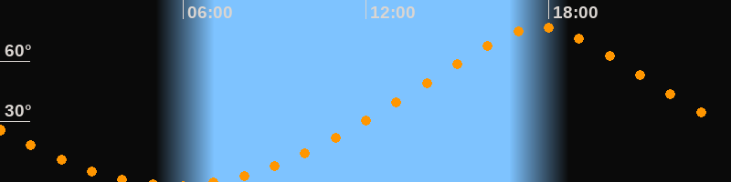 | Höchster Stand (Kulmination) | 17:43 Uhr (h = 76,9°) |