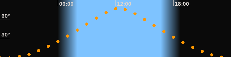 | Höchster Stand (Kulmination) | 12:23 Uhr (h = 76,9°) |