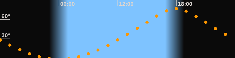 | Höchster Stand (Kulmination) | 17:59 Uhr (h = 76,9°) |