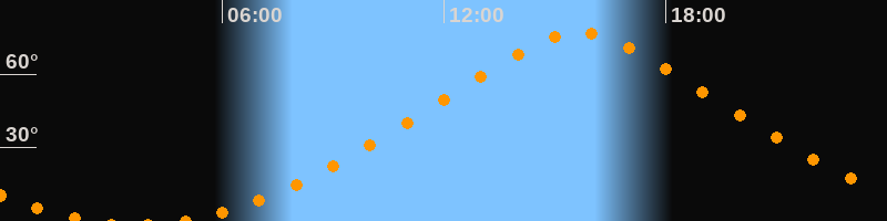 | Höchster Stand (Kulmination) | 15:40 Uhr (h = 76,9°) |