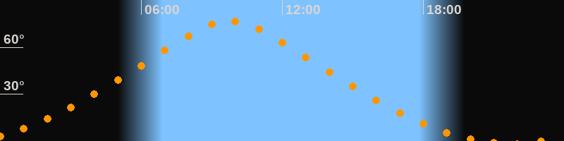 | Höchster Stand (Kulmination) | 09:46 Uhr (h = 76,9°) |