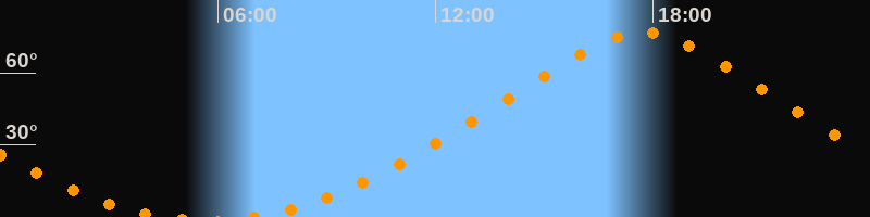 | Höchster Stand (Kulmination) | 17:43 Uhr (h = 76,9°) |