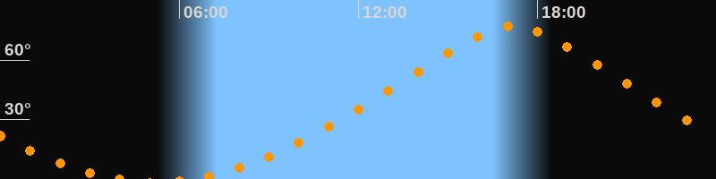 | Höchster Stand (Kulmination) | 17:11 Uhr (h = 76,9°) |