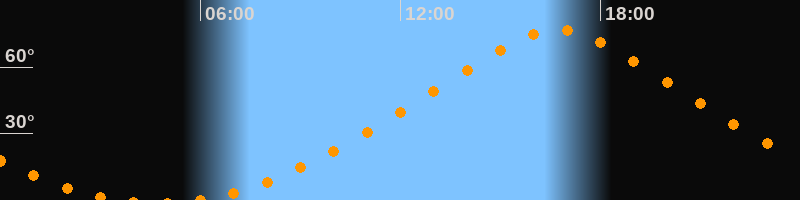 | Höchster Stand (Kulmination) | 16:42 Uhr (h = 76,9°) |