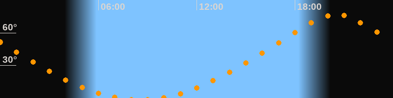 | Aufgang | 09:35 Uhr im Norden (αAz = 12,4°) |