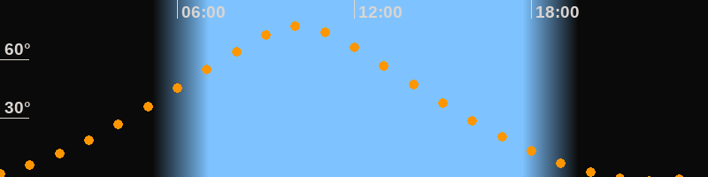 | Höchster Stand (Kulmination) | 10:06 Uhr (h = 76,9°) |