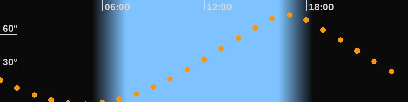 | Höchster Stand (Kulmination) | 16:53 Uhr (h = 76,9°) |
