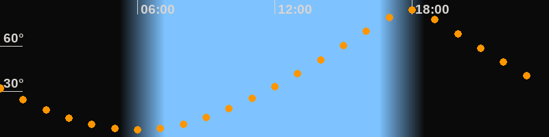 Höchster Stand (Kulmination)17:55 Uhr (h = 83,6°)
