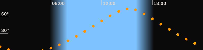 Höchster Stand (Kulmination)15:11 Uhr (h = 74,6°)
