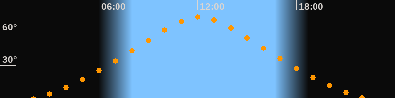 Höchster Stand (Kulmination)12:06 Uhr (h = 74,6°)