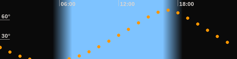 Höchster Stand (Kulmination)16:54 Uhr (h = 74,6°)