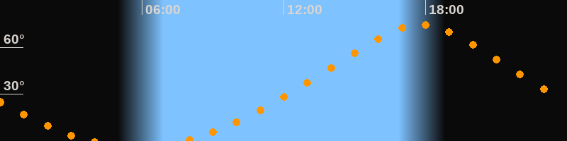 | Höchster Stand (Kulmination) | 17:46 Uhr (h = 74,6°) |