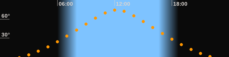 | Höchster Stand (Kulmination) | 12:13 Uhr (h = 74,6°) |