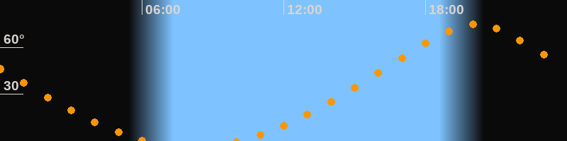 | Aufgang | 09:59 Uhr im Norden (αAz = 22,3°) |