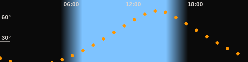 | Höchster Stand (Kulmination) | 15:11 Uhr (h = 74,6°) |