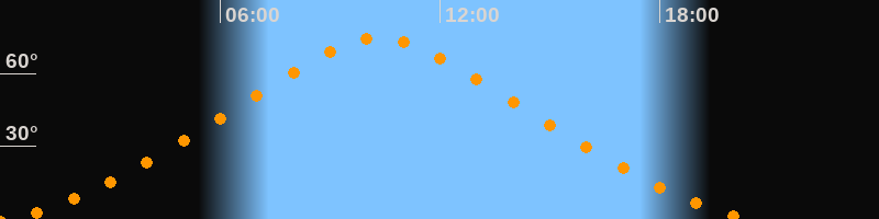 | Höchster Stand (Kulmination) | 10:20 Uhr (h = 74,6°) |