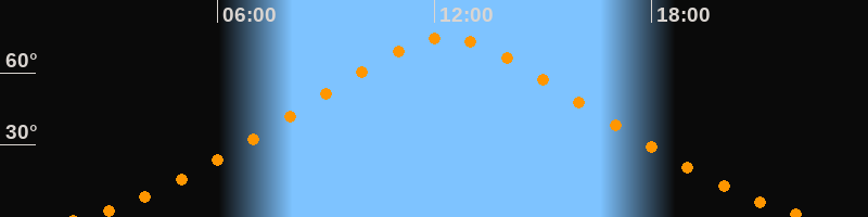 | Höchster Stand (Kulmination) | 12:19 Uhr (h = 74,6°) |