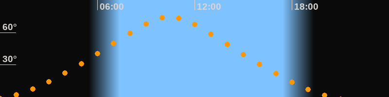 | Höchster Stand (Kulmination) | 10:27 Uhr (h = 74,6°) |