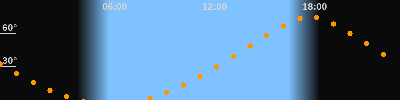 | Höchster Stand (Kulmination) | 18:37 Uhr (h = 74,6°) |