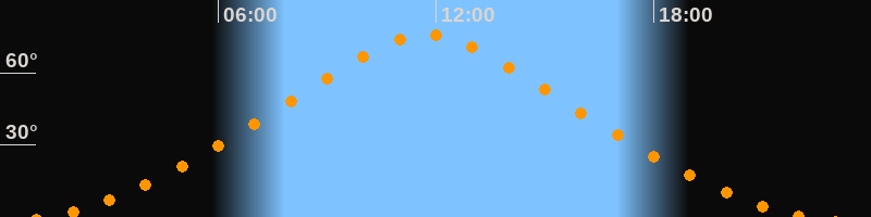 | Höchster Stand (Kulmination) | 11:45 Uhr (h = 76°) |