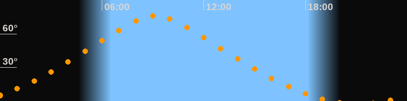 | Höchster Stand (Kulmination) | 09:08 Uhr (h = 76°) |