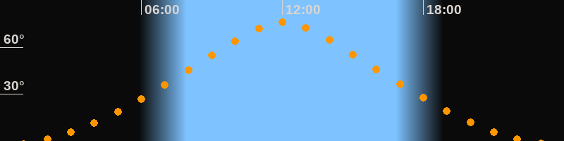 | Höchster Stand (Kulmination) | 12:02 Uhr (h = 76°) |