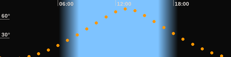 | Höchster Stand (Kulmination) | 13:07 Uhr (h = 76°) |