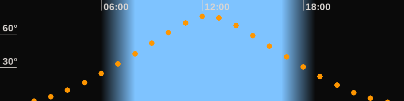 | Höchster Stand (Kulmination) | 12:20 Uhr (h = 76°) |