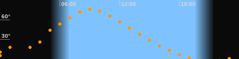 | Höchster Stand (Kulmination) | 09:08 Uhr (h = 76°) |