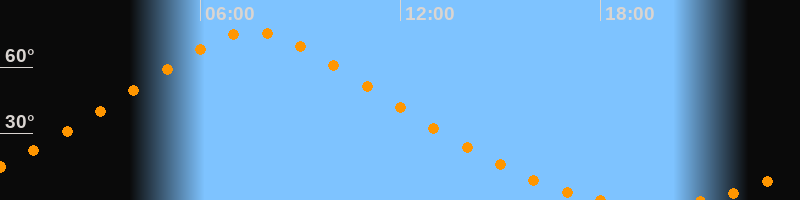| Höchster Stand (Kulmination) | 07:34 Uhr (h = 76°) |