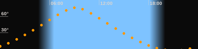 | Höchster Stand (Kulmination) | 09:09 Uhr (h = 76°) |