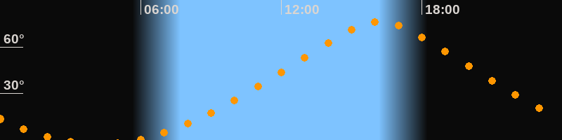 | Höchster Stand (Kulmination) | 16:12 Uhr (h = 76°) |