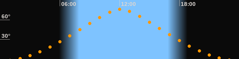 | Höchster Stand (Kulmination) | 12:05 Uhr (h = 76°) |