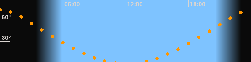 Höchster Stand (Kulmination)00:03 Uhr (h = 76°)