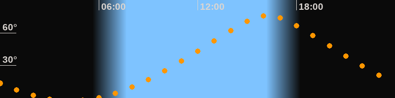 | Höchster Stand (Kulmination) | 16:15 Uhr (h = 76°) |