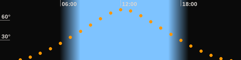 | Höchster Stand (Kulmination) | 12:15 Uhr (h = 76°) |