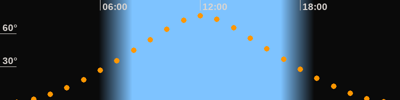 | Höchster Stand (Kulmination) | 12:04 Uhr (h = 76°) |